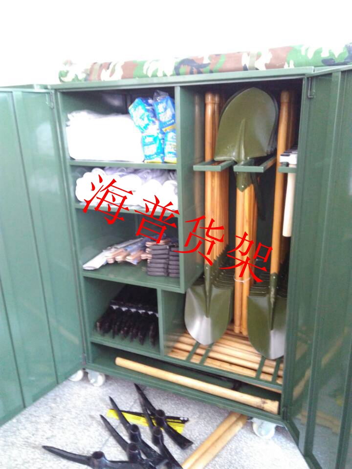案例介紹:中型貨架根據(jù)客戶要求,每層承載500kg,貨架底部加腳輪,方便搬運和運輸。另外根據(jù)部隊要求,對工具排放整齊劃一,特制儲物柜,使得工具擺放整齊,對工具擺放歸類起到很好效果。